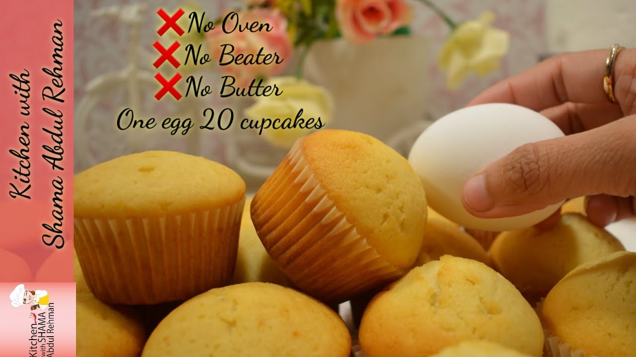 Lets Make 20 Cupcakes With One Egg No Oven No Beater No Butter Vanilla Cupcakes Recipe Youtube